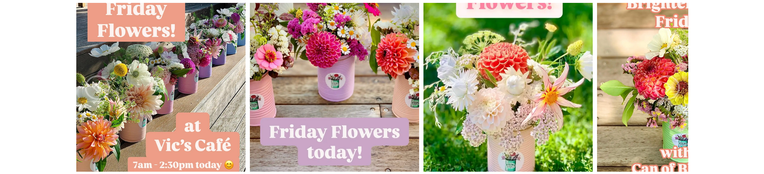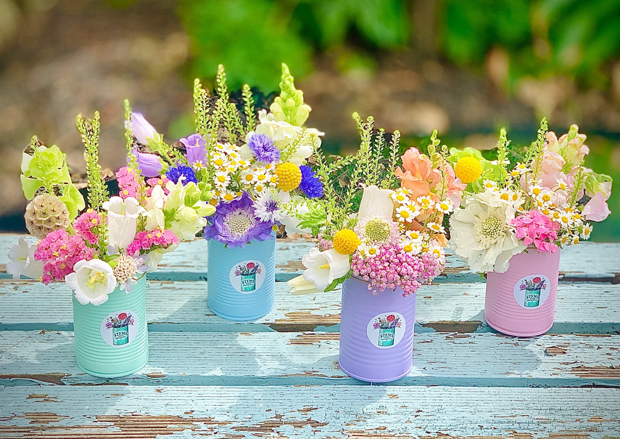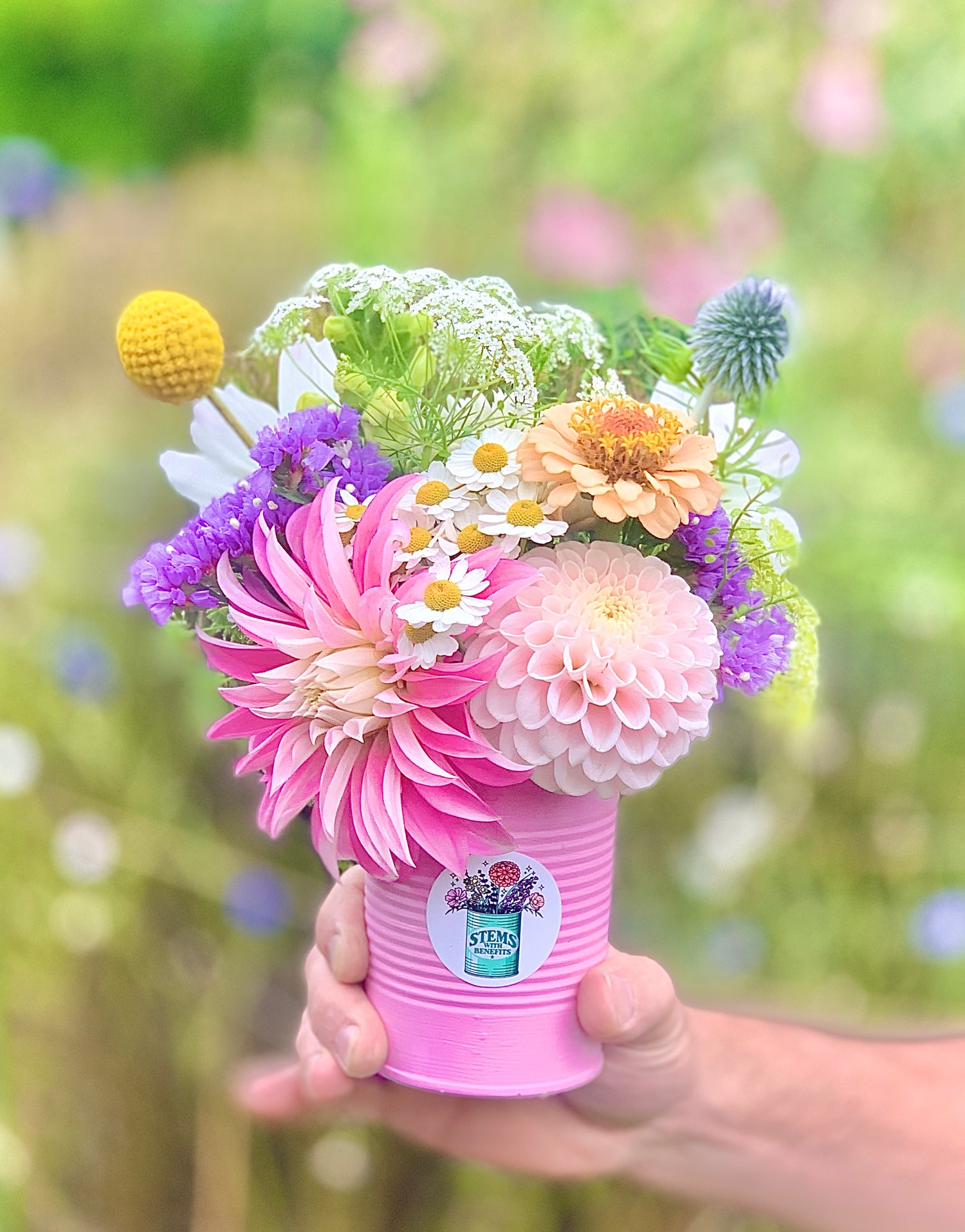 Blooms vary with the seasons – no two tins are exactly the same, but each is thoughtfully filled with what’s fresh, locally grown and in bloom that week.